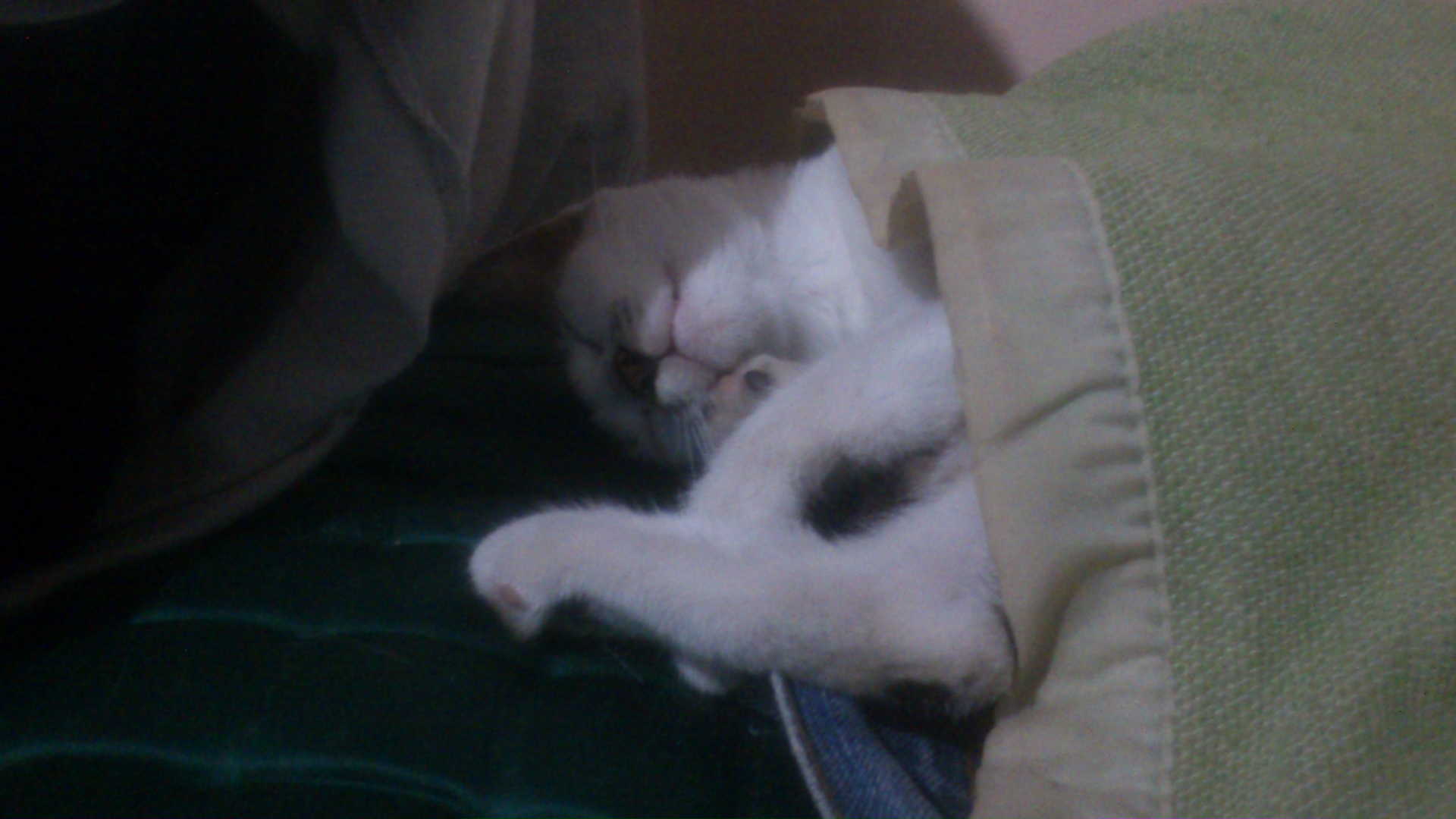 Ini adalah kucing yang datang entah darimana semingguan lalu. Tiap malam dia pasti naik ke kasur saya dan nyusul tidur.